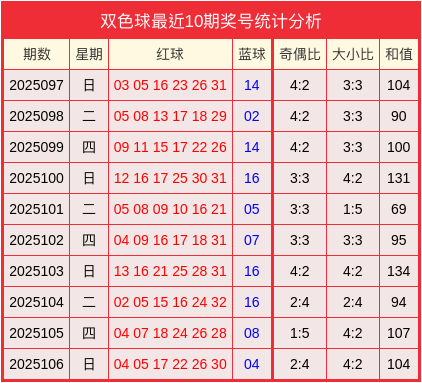 107期梁友全双色球预测奖号:奇偶比大小比和值