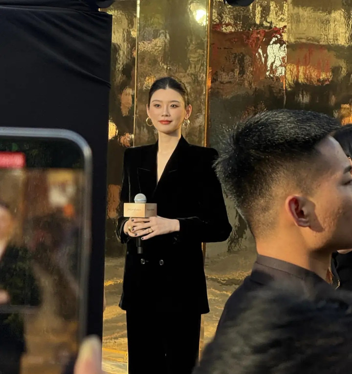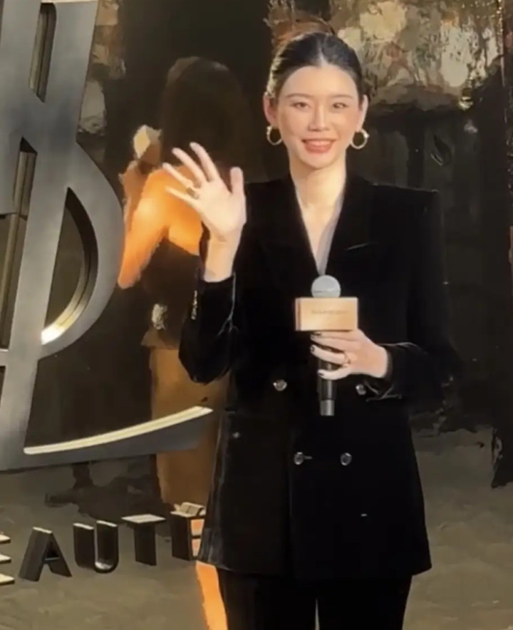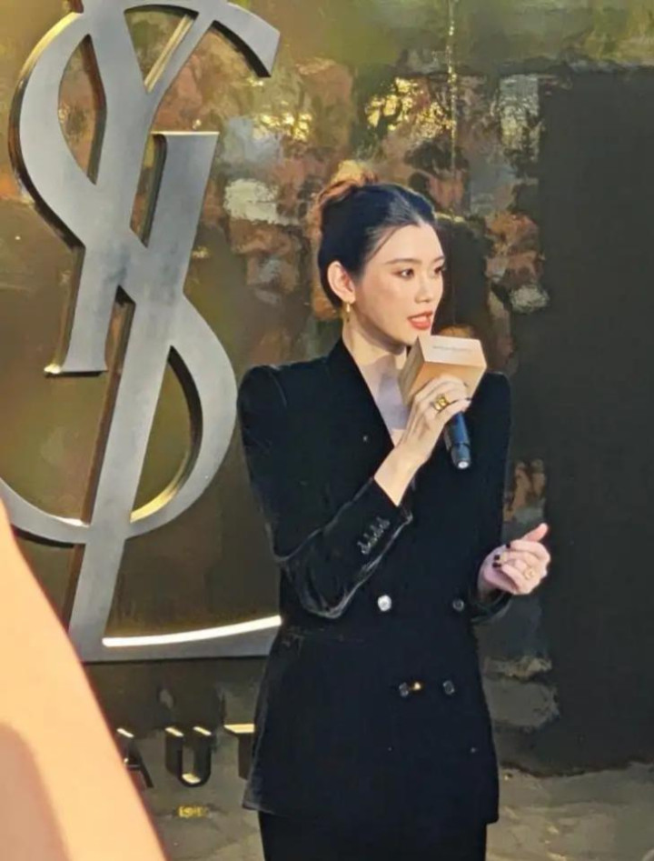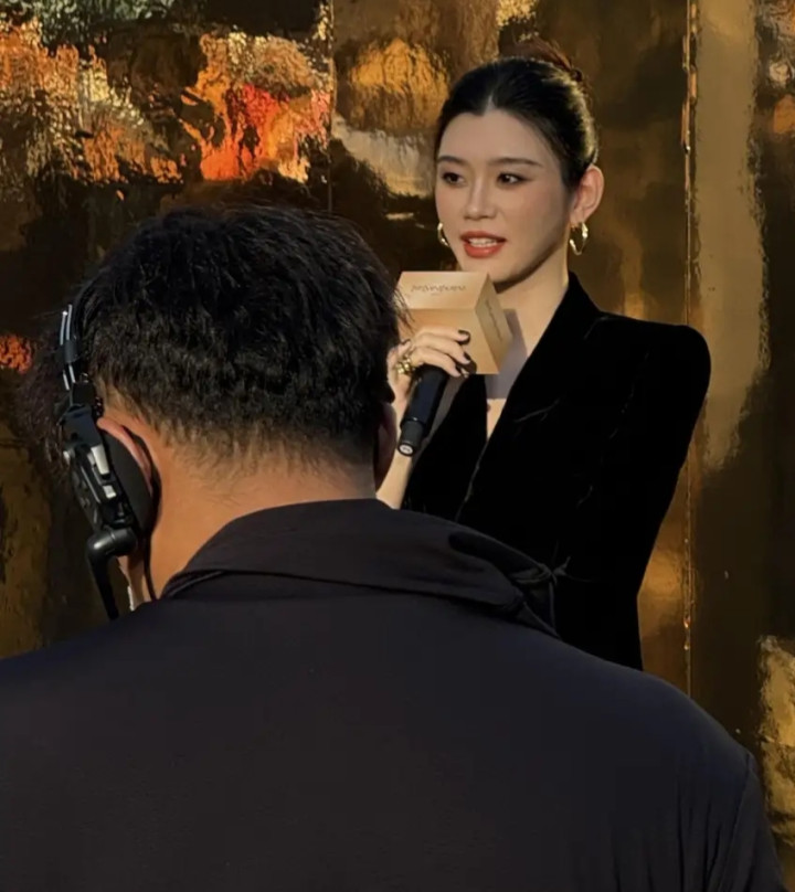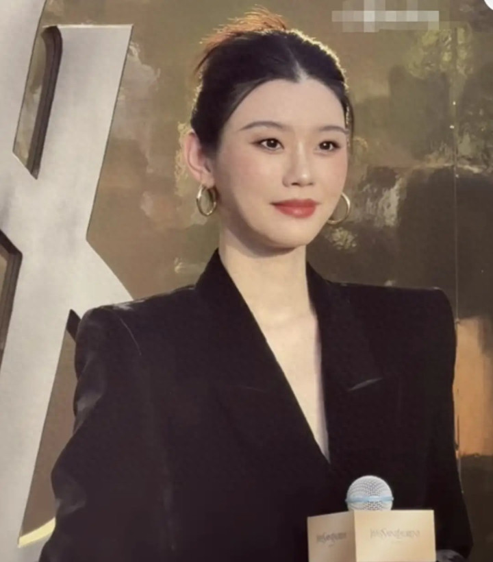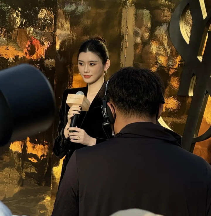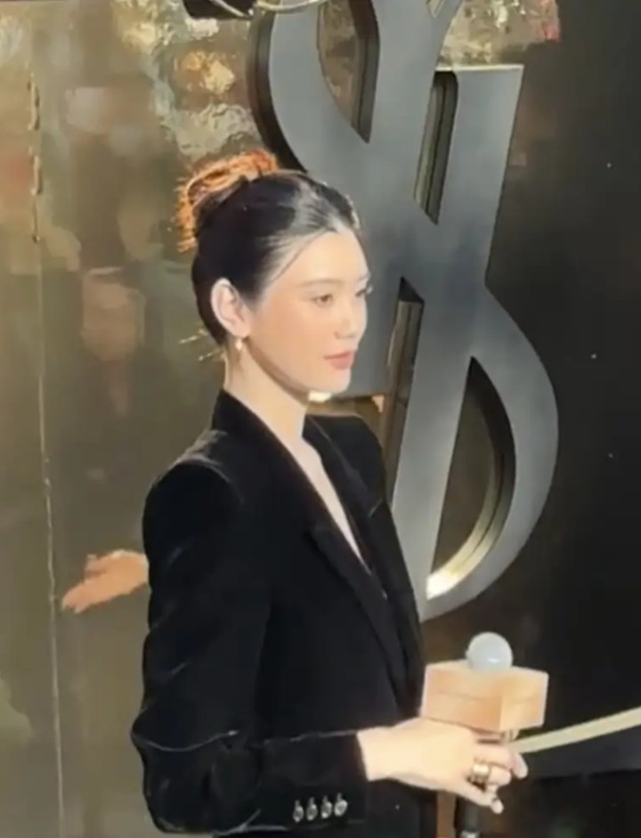 奚梦瑶丝绒西装造型亮相太古里, 优雅高级感尽显