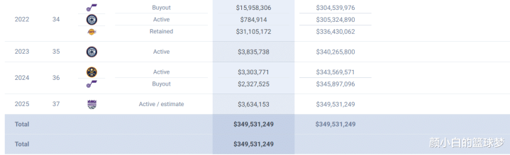 换言之从湖人离开后威少实际上赚到的薪水只有78万+383万+562万+360万(不保障),合计只有1383万,这里面还有360万不知道能不能全额拿到,威少从一个年薪4000+万的超巨沦为联盟的边角料。