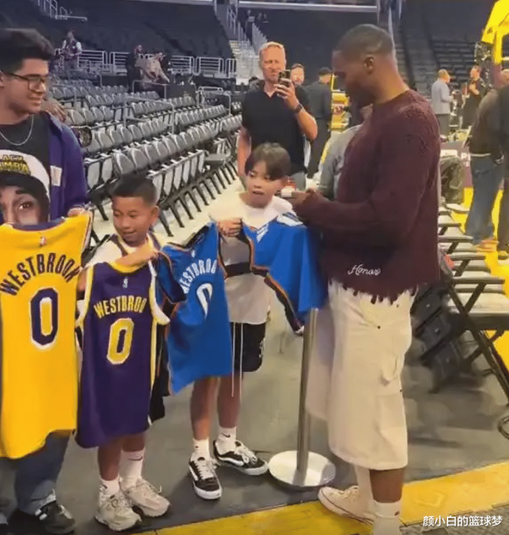 10月18日,国王VS湖人完成季前赛后,国王新援拉塞尔-威斯布鲁克在场边为球迷签名,雷霆球衣、火箭球衣、湖人球衣都有,少爷为球迷签名时唯独跳过了湖人球衣。这个举动引发了热议。