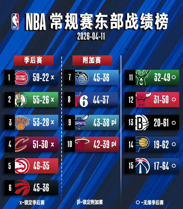 已锁定季后赛席位的球队如下——