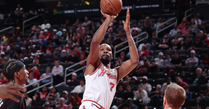 凯文-杜兰特此役18中13空砍33分7篮板7助攻并解锁单赛季2000分的成就,现年37岁193天的他由此成为NBA历史单赛季达成2000分的最高龄球员。