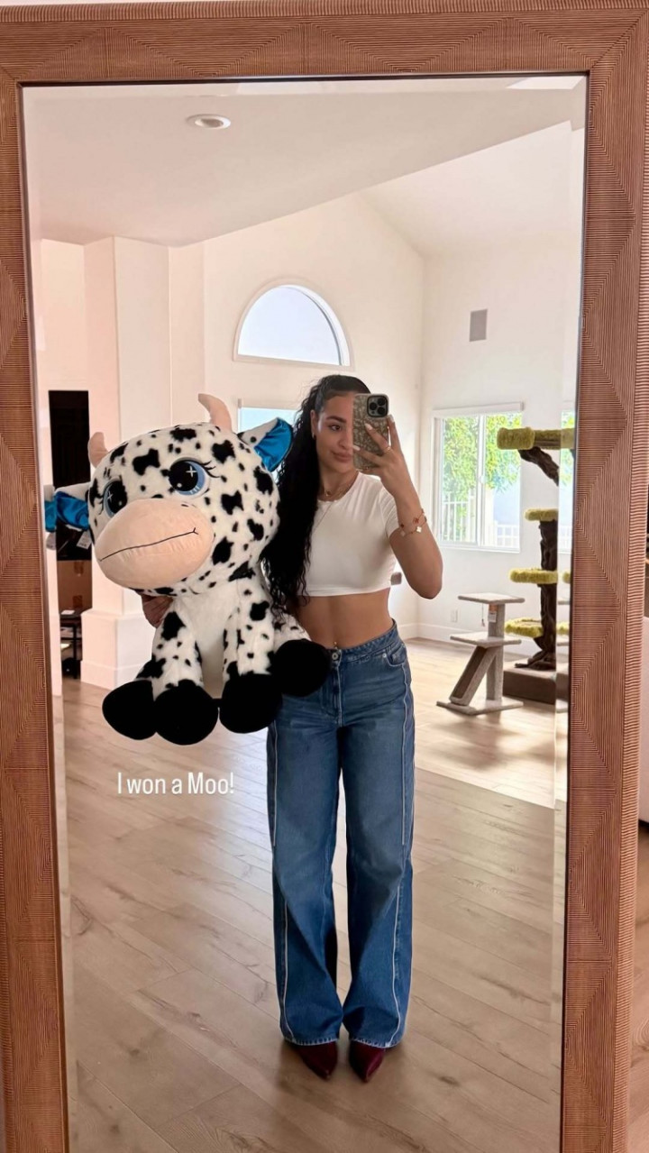 湖人球员文森特的女友LaurenBrenn更新社媒,文森特在活动中玩打枪游戏,并给女友赢回来一只奶牛玩偶。