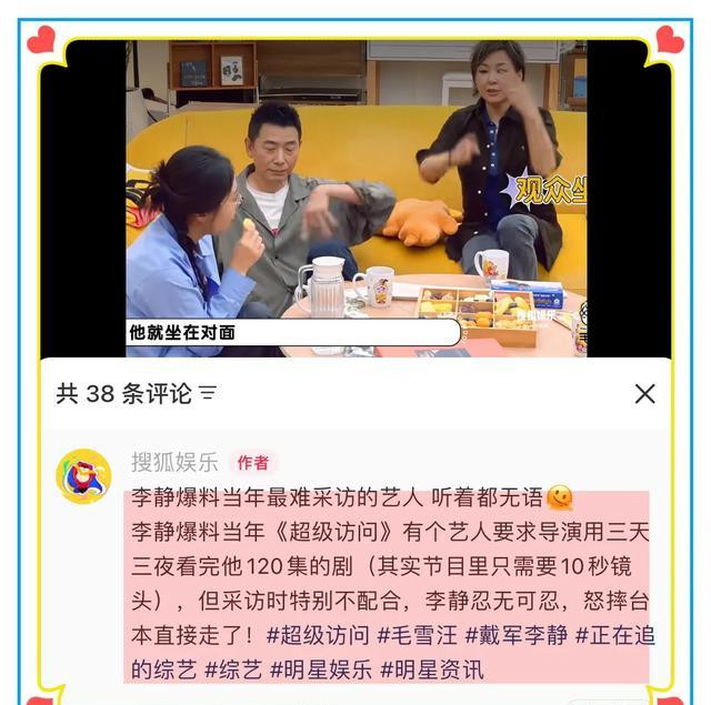 李静曝当年最难采访的艺人, 气的她怒摔台本, 评论区现2字男明星